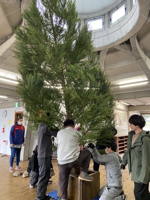 今年は15メートルほど職員一丸となって木を切って、子どもたちと飾り付けをしました!